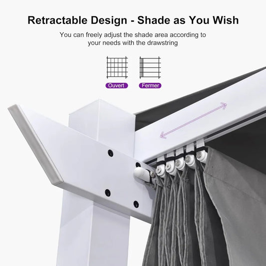 10' x 13' Outdoor Aluminum Pergola White Heavy-Duty Retractable Pergola Patio Metal with Double Sun Shade Canopy for Gardens De