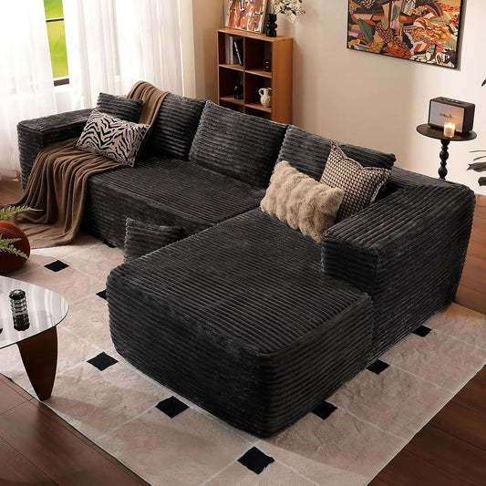 Comfy Boneless Sectionals For Living Room, Plush Corduroy Couch With Comfy Chaise Lounge, U Shaped Sectionals Foam Couches