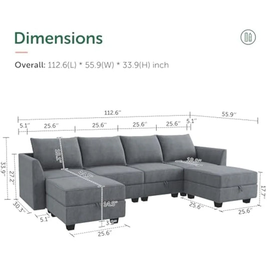 Modular Sectional Sofa U Shaped Sectional Couch with Reversible Chaise Modular Couch with Storage, Bluish Grey