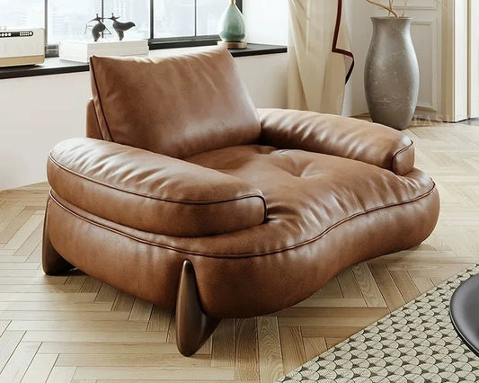 Modern Brown Curved Leather Chair for Living Room & Small Apartments