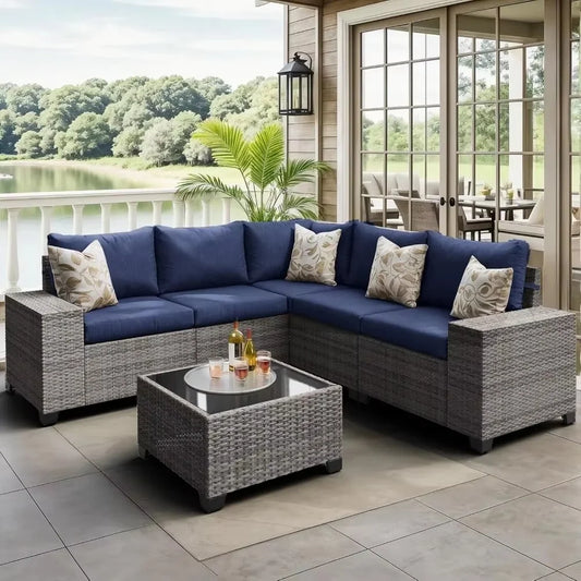 #For 5 Pieces Wicker Patio Furniture Set Outdoor Patio Chairs with Ottomans Conversation Furniture with coffetable&
