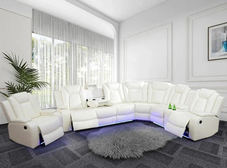 Power Recliner Sofa Sectional Sofa with LED Light for Living Room, Air Leather Reclining Corner Sectional Sofa Set