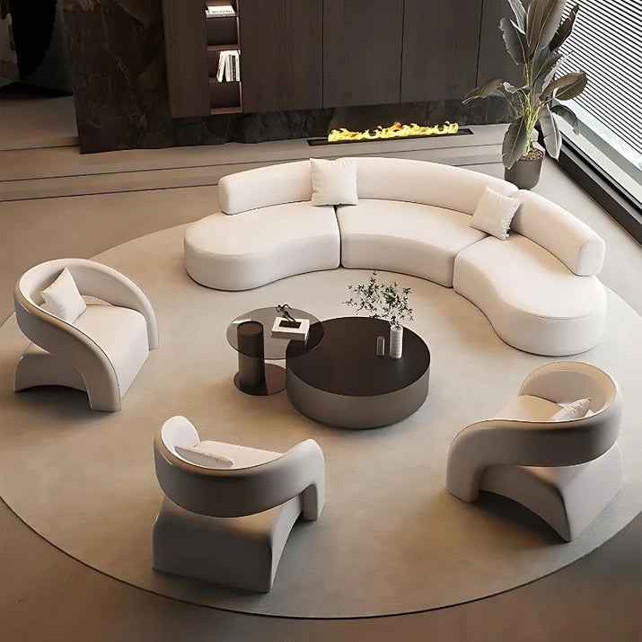 133.9" U-Shaped Sofa Set (Sofa A+Table+3Chairs B) - Cloud Couch, Solid Wood Frame