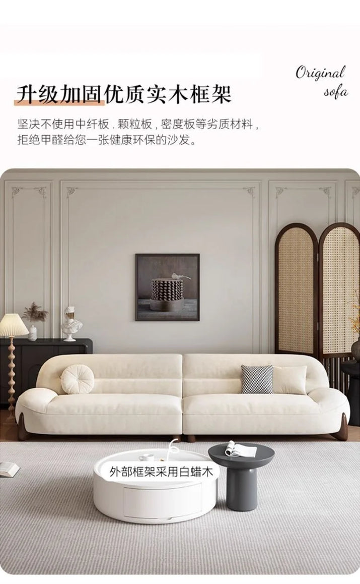 2025 new extremely simple modern cream style designer small apartment living room arc fabric sofa