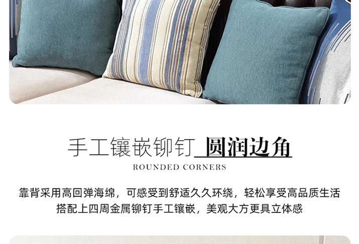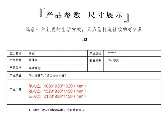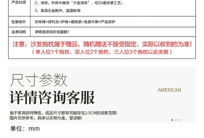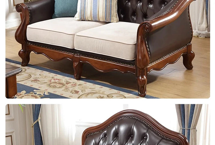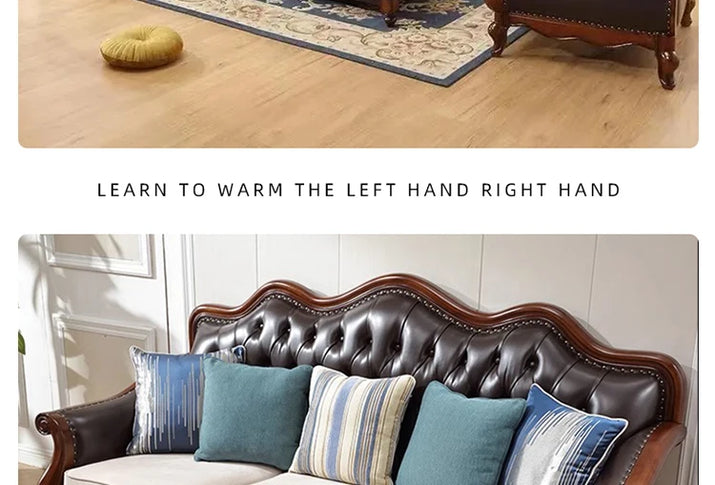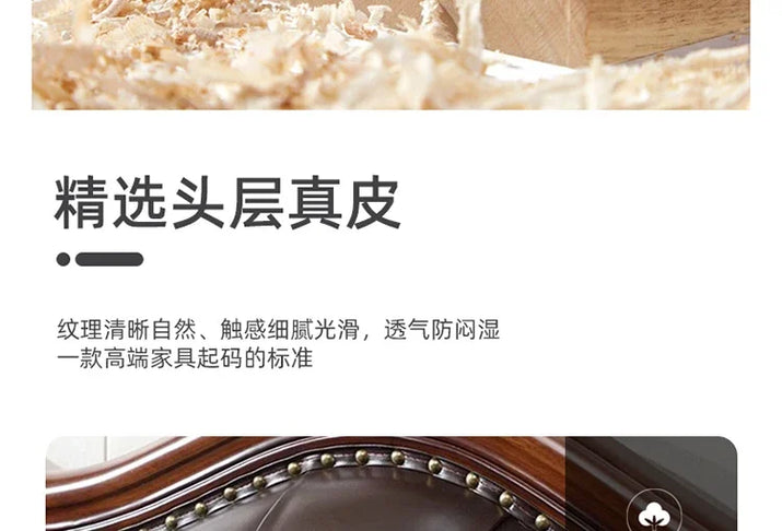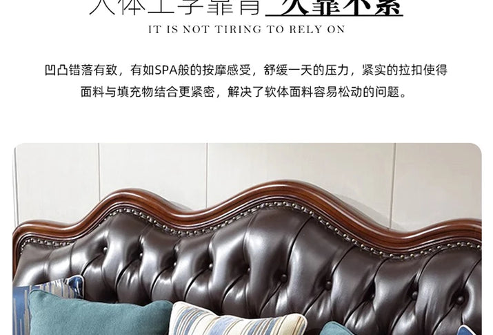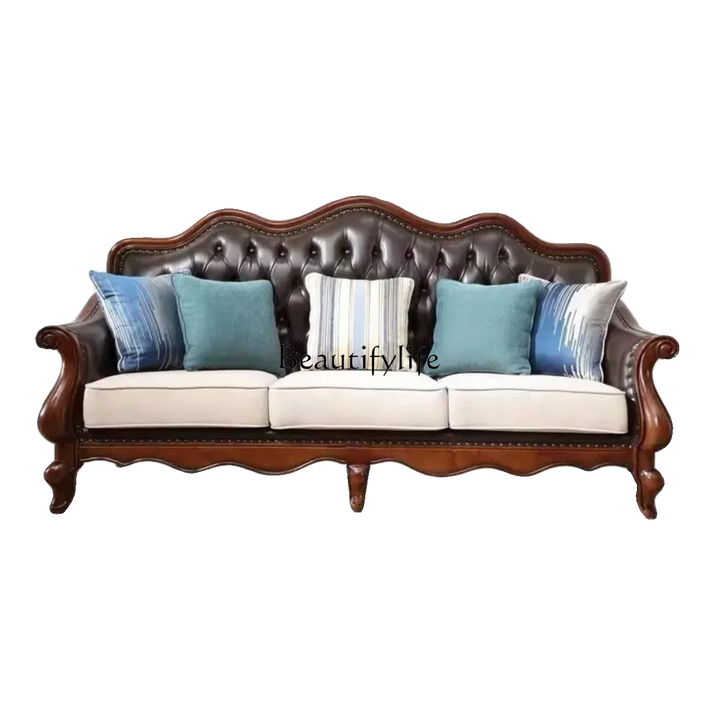 4*American all-solid wood leather sofa European double triple retro modern simple