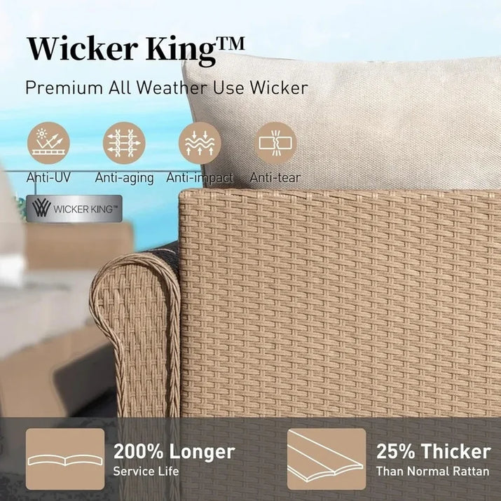 4-Piece Outdoor Patio Furniture Set, Wicker Rattan Conversation Set with 3-Seat Sofa, 2 Chairs, and Coffee Table