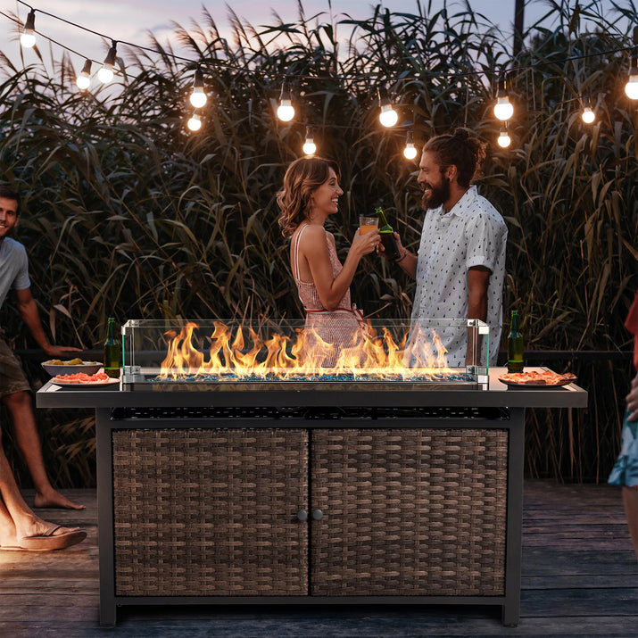 42 Inch Gas Fire Pit Table, 50,000 BTU Propane Pits for Outside with Steel Lid and Waterproof Cover, 2 in 1 Firepit Table