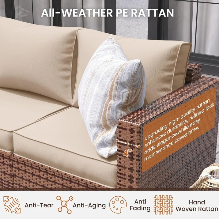 Transform your outdoor space into a luxurious sanctuary with this stunning patio furniture set, designed for both comfort and style, perfect for gathering with family and friends.