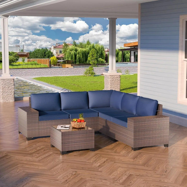 PatioLix Furniture Sets Outdoor Conversation Sofa 6 Piece Set, All-Weather High Back