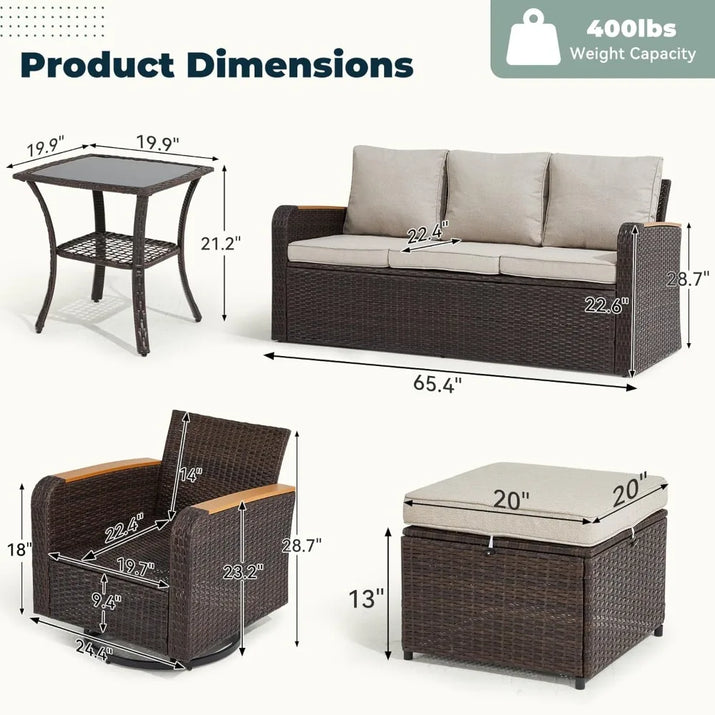 6-Piece Wicker Patio Furniture Set, Outdoor Conversation Set with PE Rattan Sectional Sofa & Swivel Chairs – Ideal for Indoor