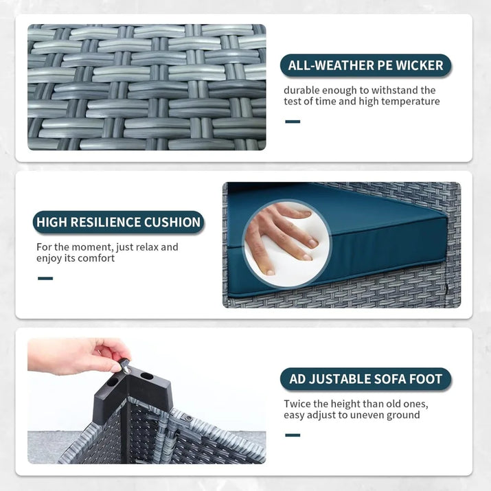 Outdoor Conversation Set PE Rattan Sectional Sofa Couch with Storage Table and Peacock Blue