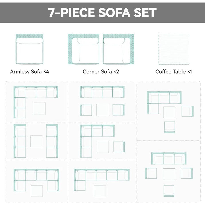 7-Piece Outdoor Patio Furniture Set, Sectional Sofa with PE Rattan Wicker, Conversation Area with Table and Cushions