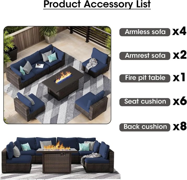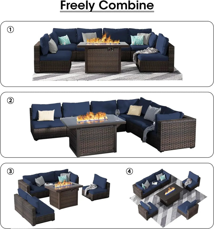 7 Piece Patio Furniture Set with Fire Pit Table Outdoor Sectional Conversation Sofa Set with Coffee Table