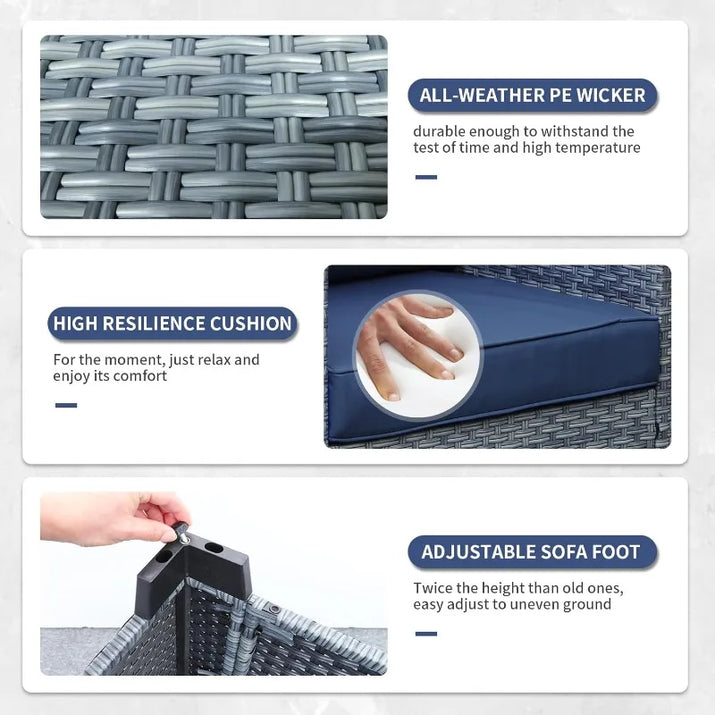 7 Piece Wicker Patio Furniture Sets Outdoor Conversation Set, PE Rattan Sectional Sofa Couch with Storage Table and Non-Slip Nav