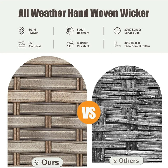 - Durable wicker rattan withstands elements