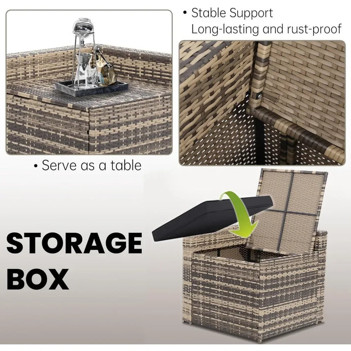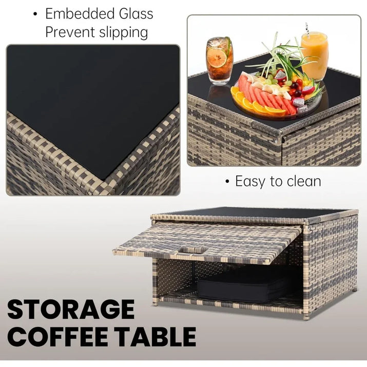 -8 Pieces Outdoor Wicker Rattan Patio Furniture Sectional Set,Glass Top Table Hidden Storage,7 Sofa Sections, Oversized Cushions