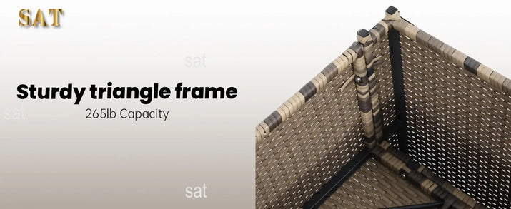 Answer 1: The patio furniture set is crafted from premium wicker rattan, which is designed to withstand various weather conditions, ensuring durability and easy maintenance over the years.