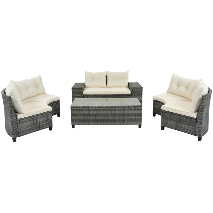 8-pieces Outdoor Wicker Round Sofa Set, Half-Moon Sectional Sets All Weather, Curved Sofa Set With Rectangular Coffee Table, PE