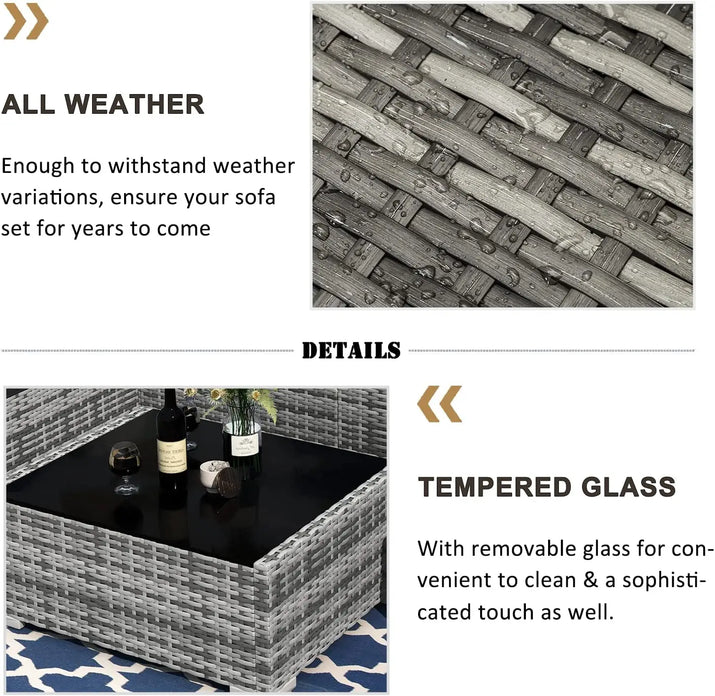 - Durable wicker rattan withstands elements
