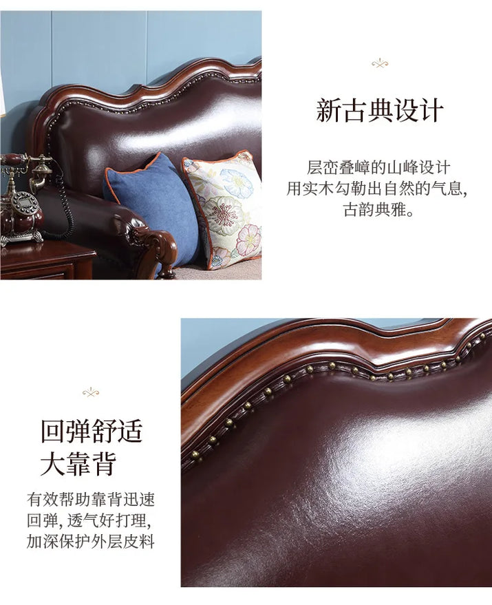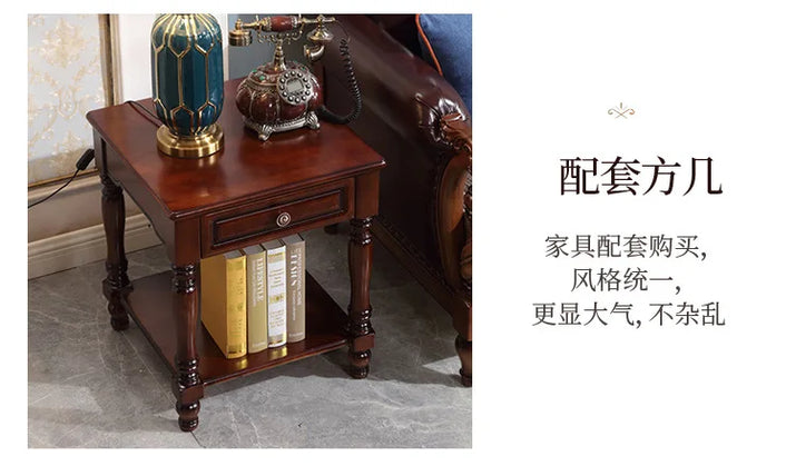 American pastoral all-solid wood sofa, European living room leather sofa, small household, coffee table type, combined light