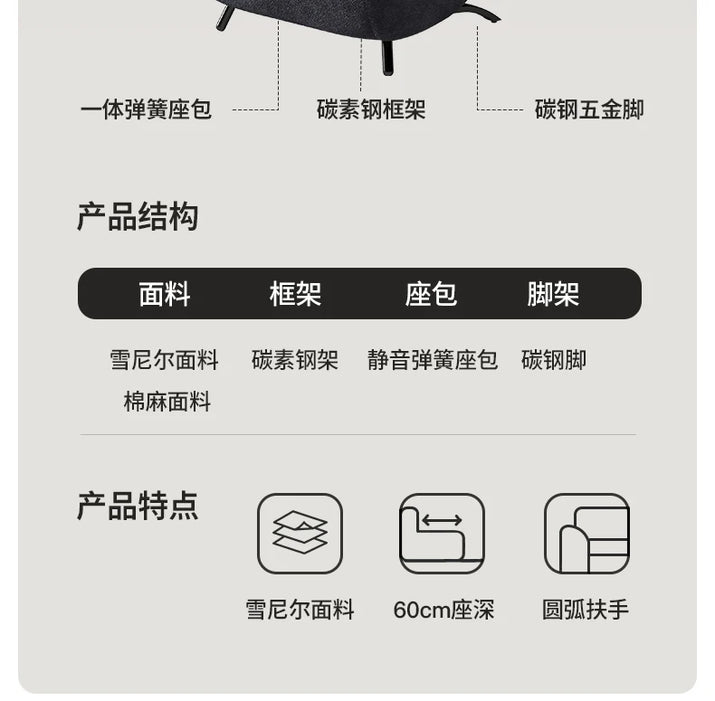 Cream Antelope Single Living Room Sofa Fabric Leisure Chair Middle Antique Lazy Sofa