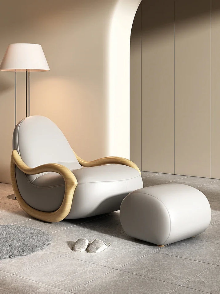 Cream Style Rocking Chair Chinese Lazy Sofa Recliner Technology Fabrics Balcony Leisure Chair