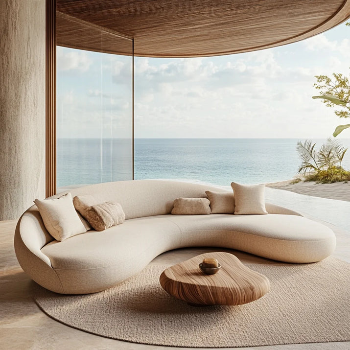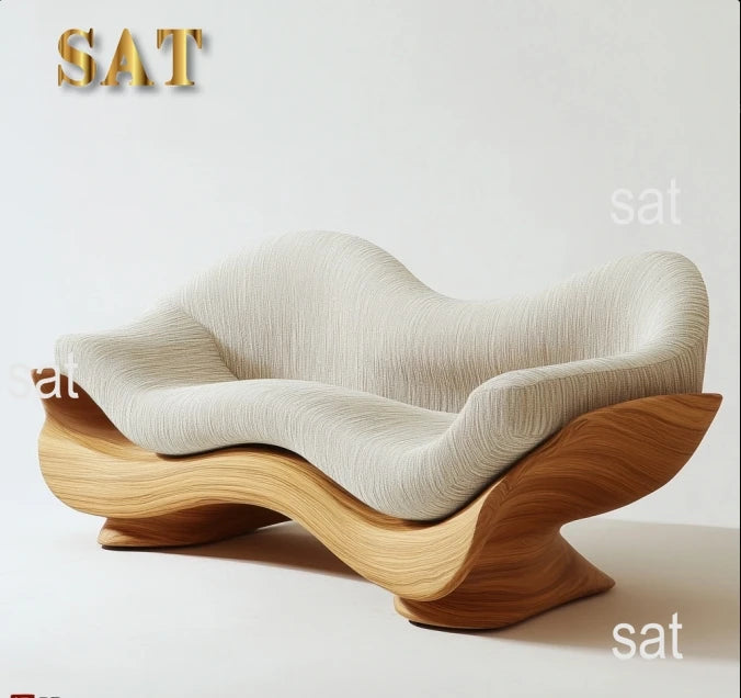Curved Garden Furniture Living Room Wooden Sofa Sets Solid Wood Patio Sofa