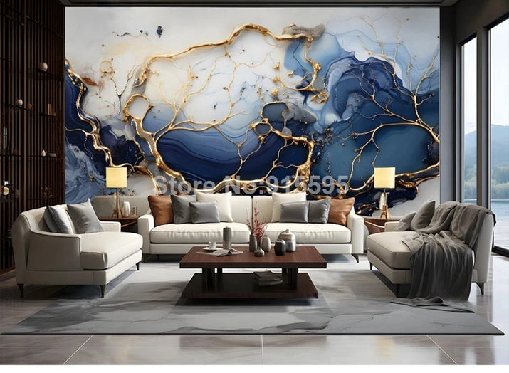 Custom Large Size 3D Wallpaper Modern Mable Golden Blue Wall Paper for Living Room TV Background Mural Canvas Home Decoration