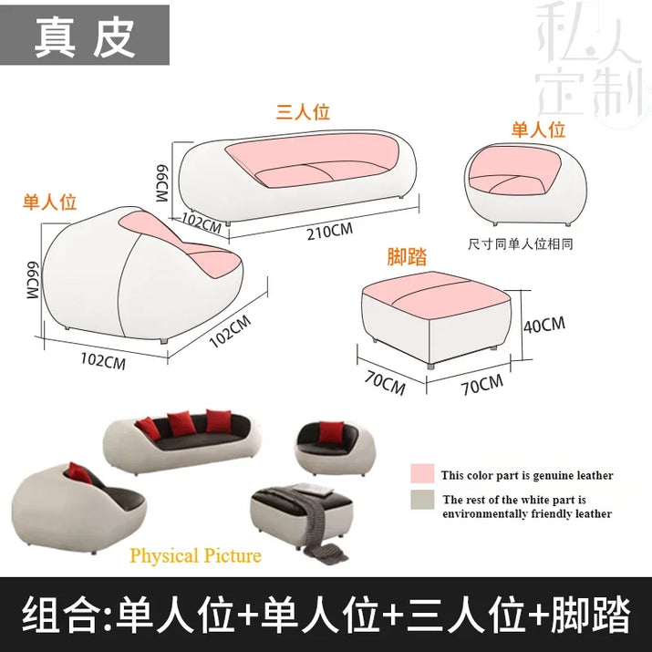 Cute Luxury Nordic Sofa Set – Soft Lazy Loveseat & Modern Lounge Puffs