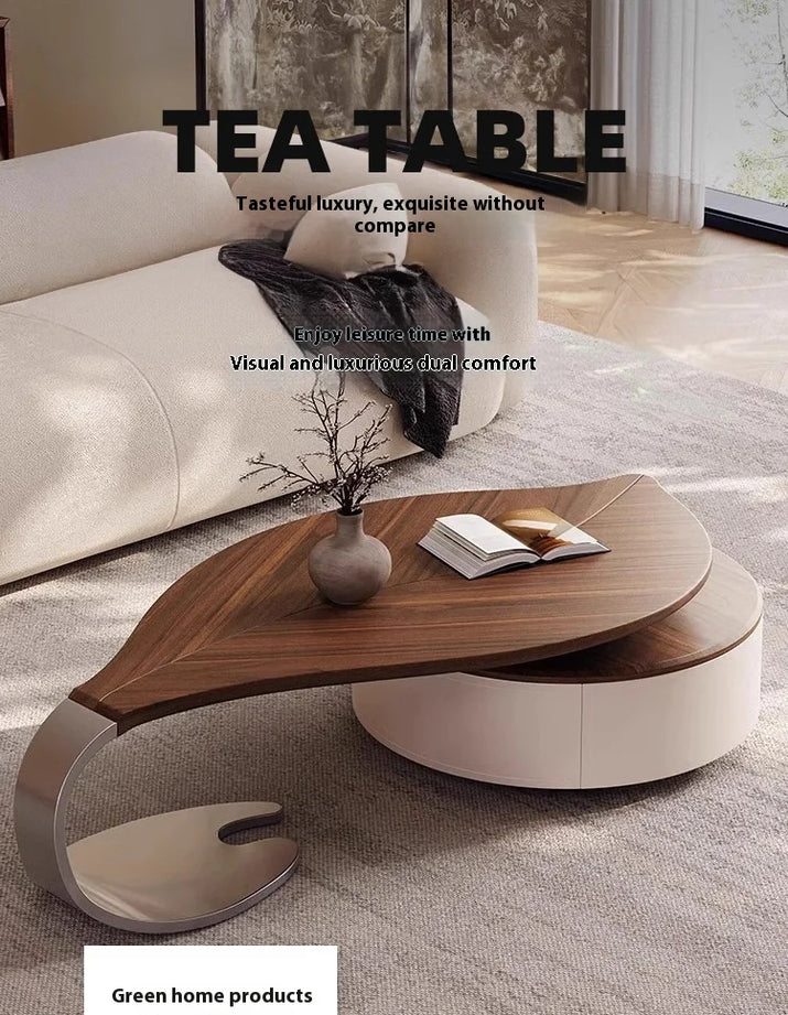 Designer retro solid walnut coffee table with stylish metal high-end living room furniture