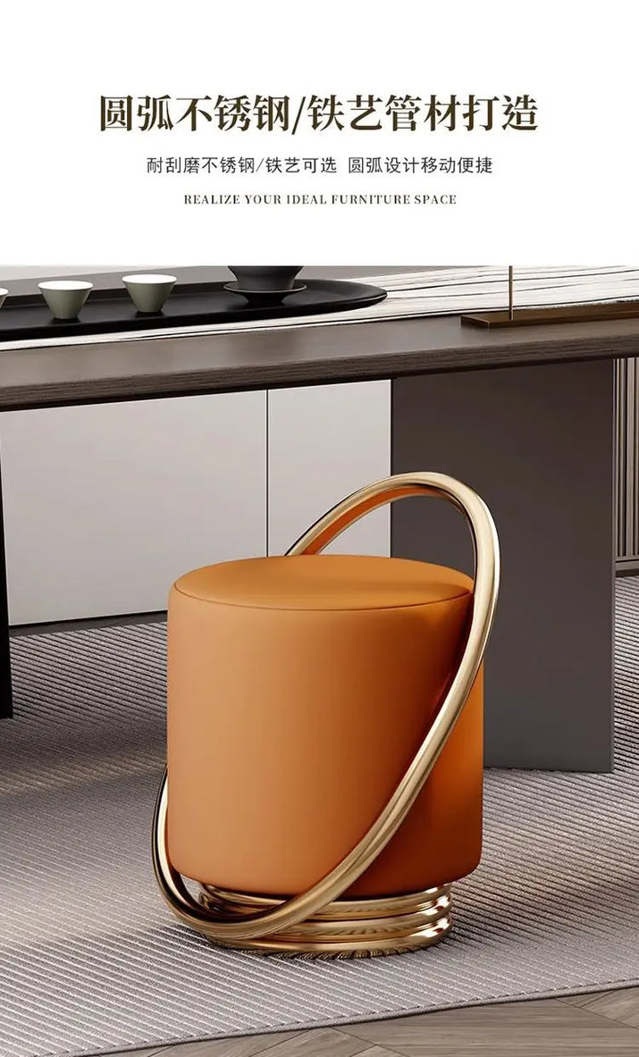 Dressing Table, Stool, Home Living Room Coffee Table, Simple Bedroom Makeup Sofa, Nordic Modern Light Luxury Round Dressing