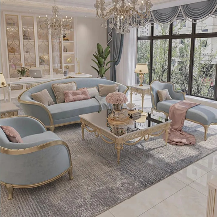 French light luxury court princess cream wind carved three-person sofa neoclassical American solid wood princess sofa combinatio