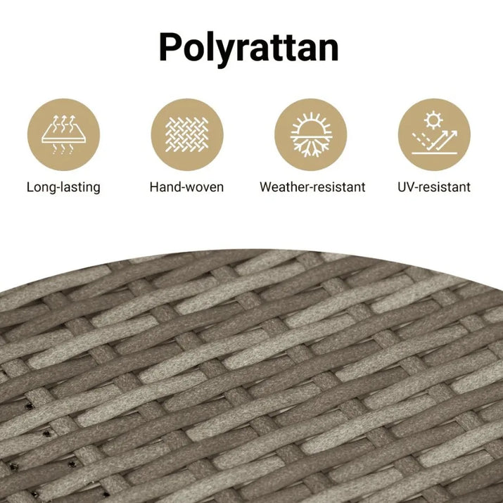 Answer 1: The patio furniture set is crafted from premium wicker rattan, which is designed to withstand various weather conditions, ensuring durability and easy maintenance over the years.