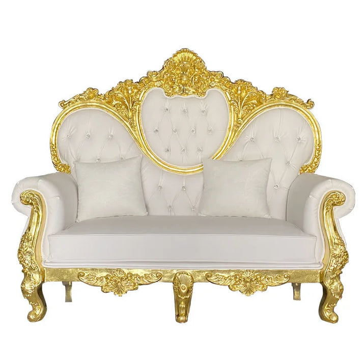 Gold Upholstered Classic Chaise Lounge Loveseat Comfortable Royal Throne Sofa Wedding Chair Stainless Steel Chair Party ソファ