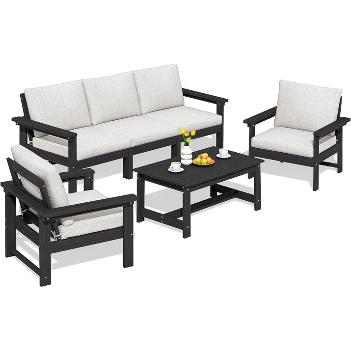 HDPE Patio Conversation Set, 6-Piece Sectional Outdoor Furniture Set, All Weather Outdoor Couch Set Patio Furniture Set for Dec