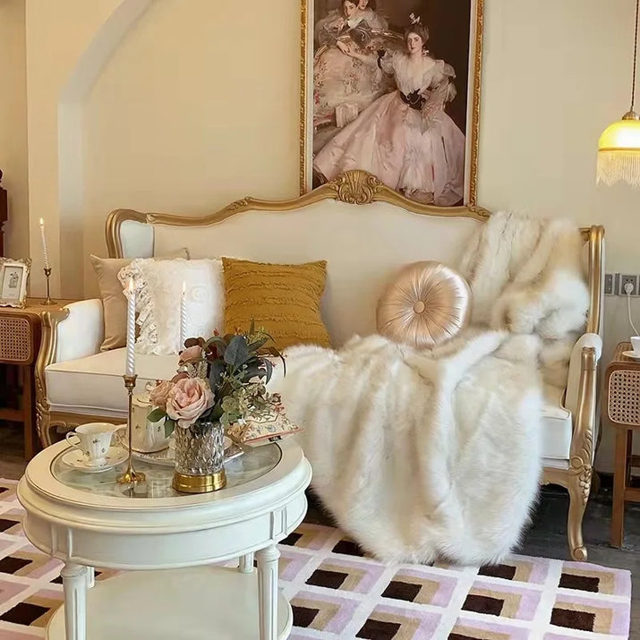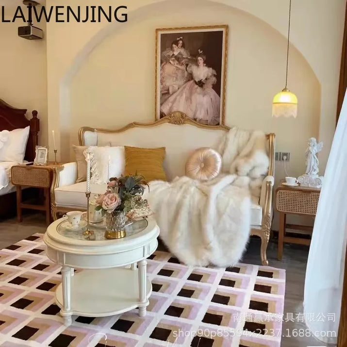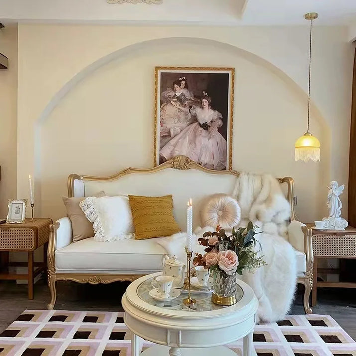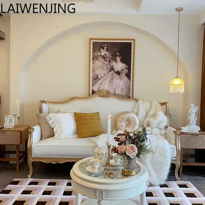 HLZ solid wood sofa three-person small apartment living room European light luxury combination furniture retro