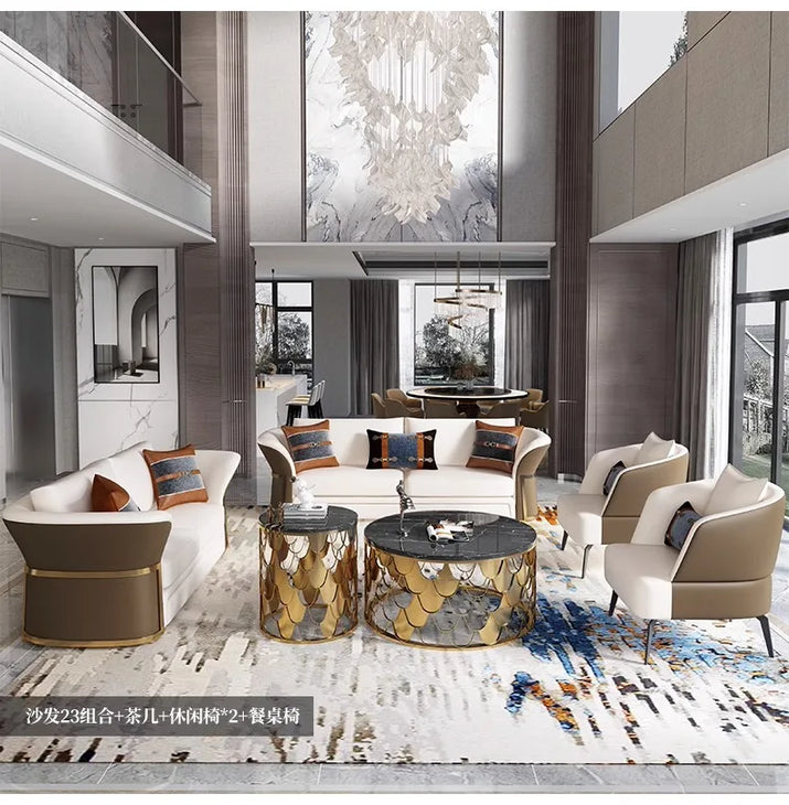 Italian Designer Leather Sofas Luxury 3 Pieces Set Minimalist Modern Sofa Loveseat Floor Divano Soggiorno Home Furniture
