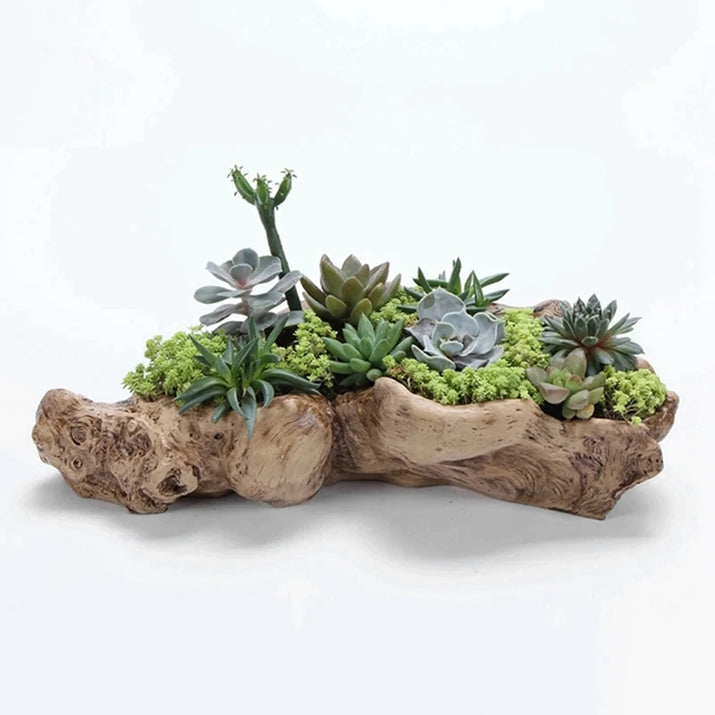 KEKA Pastoral Retro Landscape Flower Pot Resin Tree Stump Planter Artificial Driftwood Sculpture Rustic Succulent