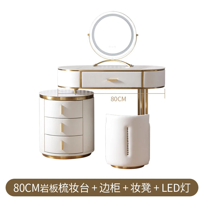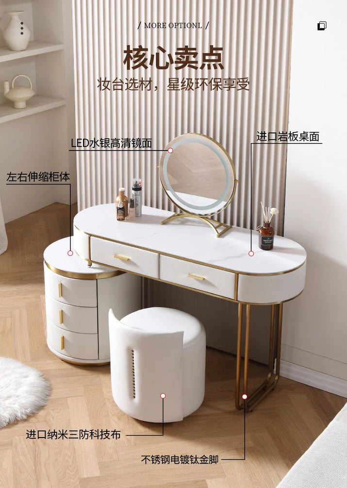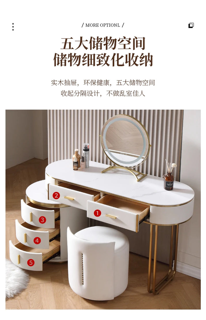 Light Mirror Vanity Table White Minimalist Drawers Storage Dressing Table Desk Makeup Mesa De Maquillaje Bedroom Furniture