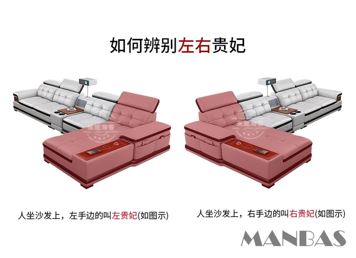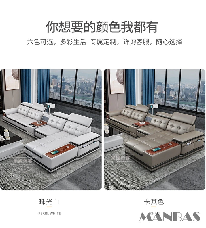 Linlamlim Luxury Genuine Leather Sectional Sofa with Adjustable Headrests, Projector, Speaker and Storage for Living Room Couch