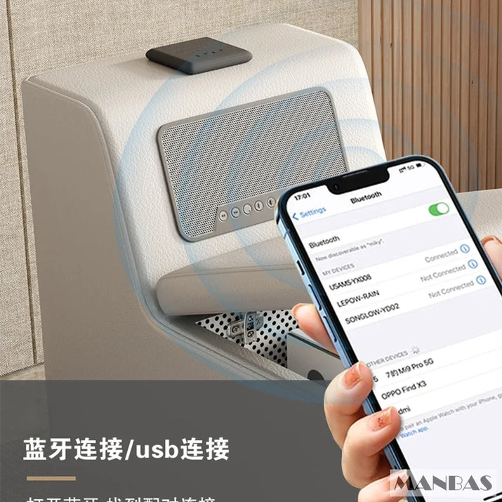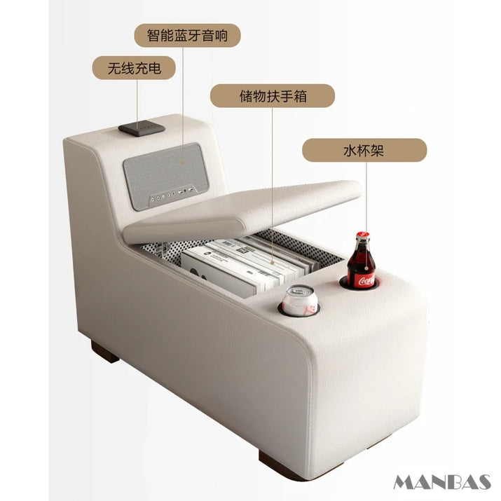 Luxury L-Shaped Genuine Leather Sectional Sofa Sets with USB, Bluetooth Speaker - MANBAS Living Room Italian Leather Couches