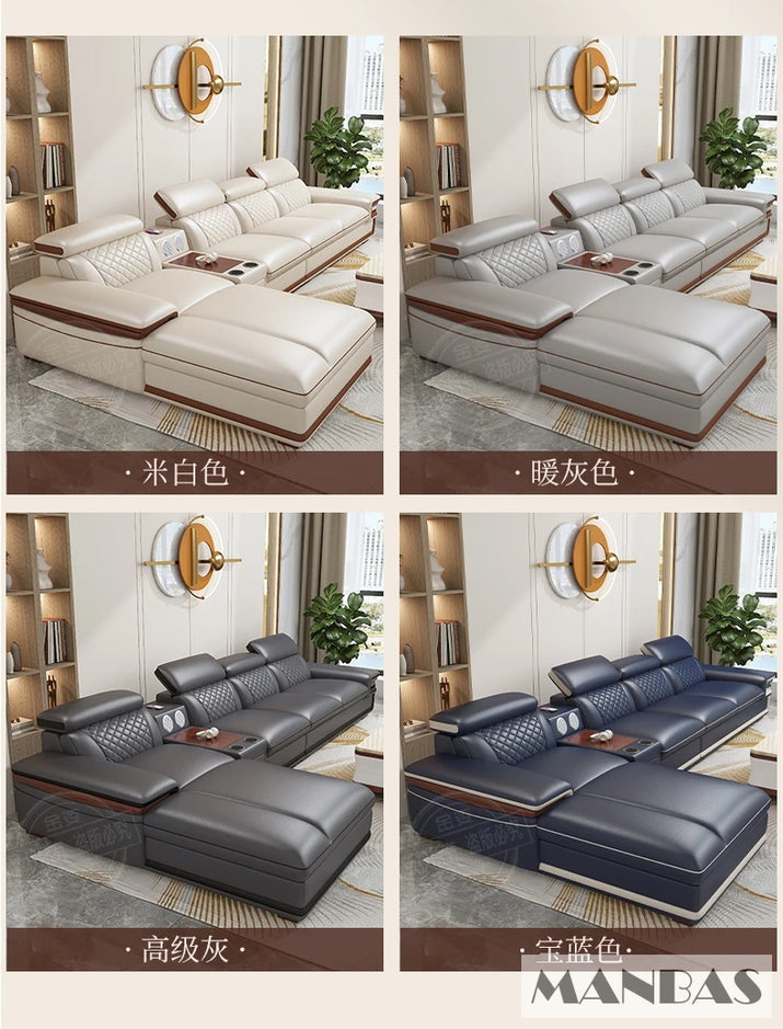 MINGDIBAO Premium Italian Genuine Leather Sofa Set for Living Room with Adjustable Headrests, Bluetooth Speaker, Wireless Charge