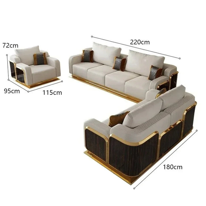Modern Luxury Leather with Wooden Sofa Set, Fashion 2/3/4 Seater Sofa, Leather Couch for Living Room Accept Customzied Color