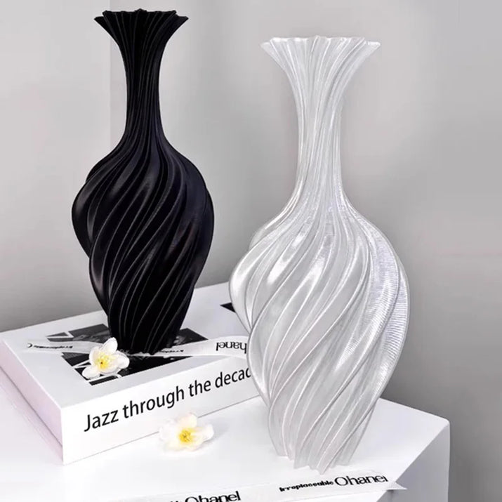 Modern Style Vase Room Decoration Plastic Flower Vase Wihte Black Flower Bottle Aesthetic Floral Arrangement Display Vase