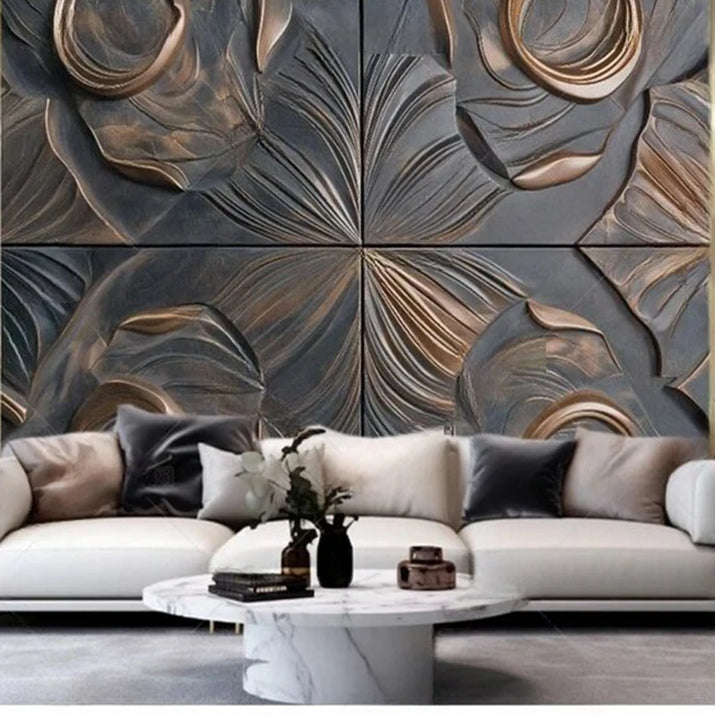 MU8844 Modern high-end golden gilded rock plate TV sofa background wall paper mural
