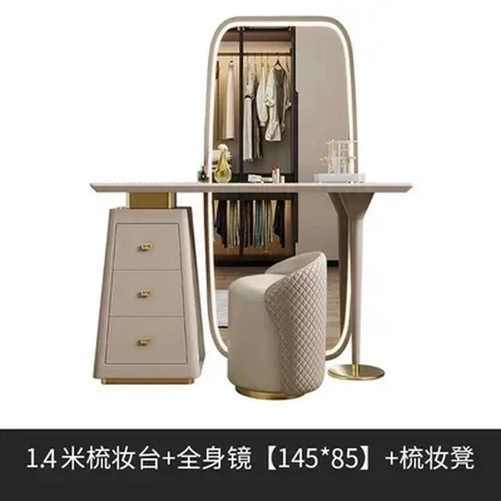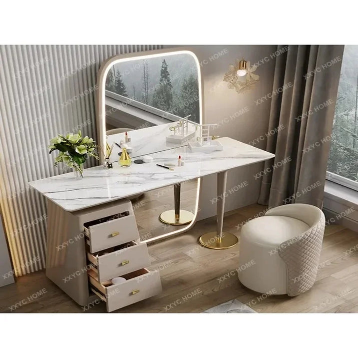 Multifunctional White Makeup Table with Drawers, Nordic Style Luxury Dressing Cabinet for Home Furniture