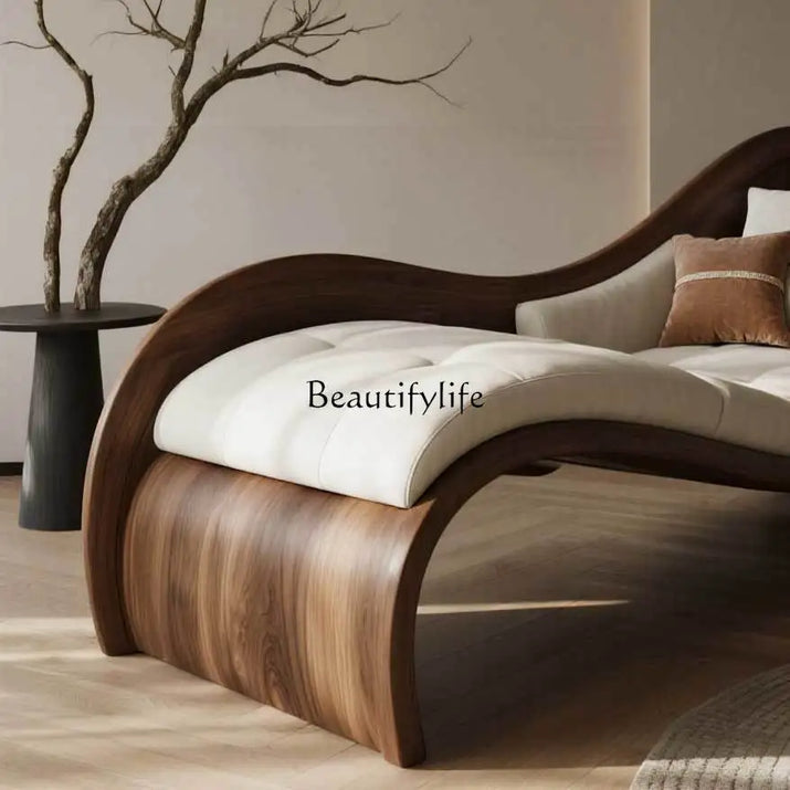 New Chinese black walnut solid wood chaise longue living room sofa sun couch