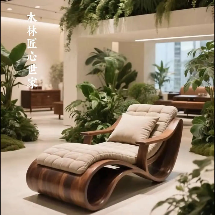 New Chinese-style North American black walnut chaise longue Song-style aesthetic living room chaise longue solid wood leisure