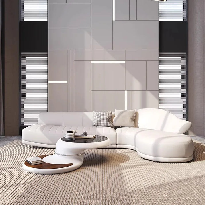Nordic Modern Luxury Curved Leather Sofa Multi-seat Combination for Home Italian Design Living Room Villa Leather Sofa Set
