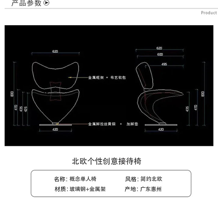 Nordic simple leisure chair light luxury creative design single sofa reception chair metal butterfly chair